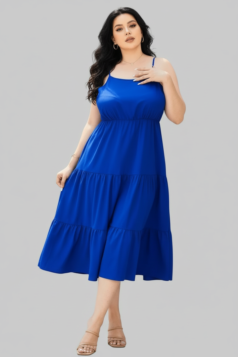 Plus Size Spaghetti Strap Tiered Dress-Flowy, Feminine & Flattering Fit