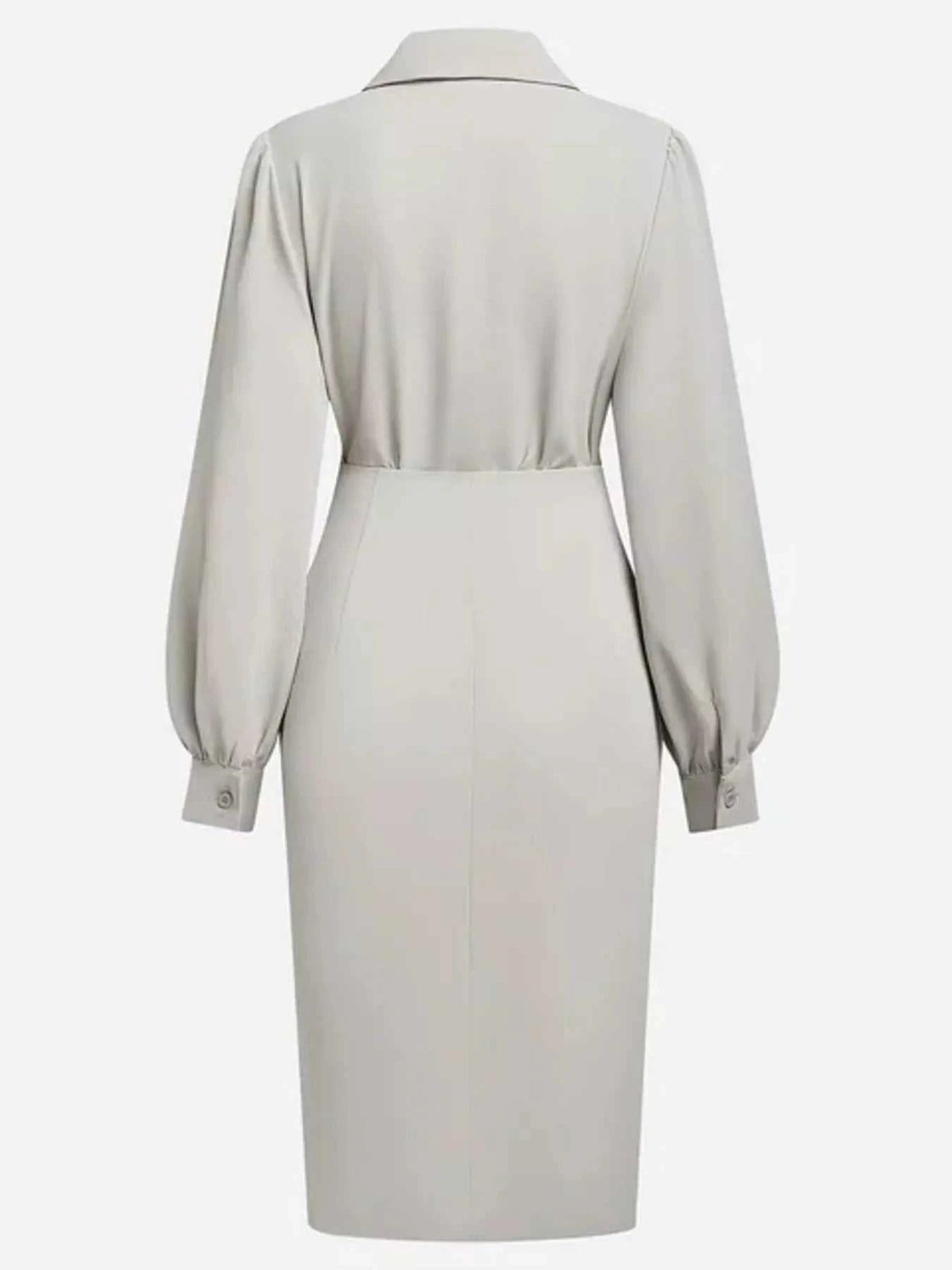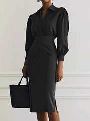 Discover our stunning ruched midi shirt dress featuring a flattering side slit. This Ruched Midi Shirt Dress perfect for any occasion, this ruched midi shirt dress combines comfort and style effortlessly transitions from day and night. The classic ruched midi shirt dress silhouette offers timeless elegance while the ruched design creates a stunning figure-flattering fit..
