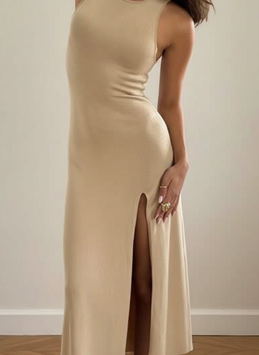 Elevate your style with our Side Slit Maxi Dress Round Neck Sleeveless chic and versatile style. This Side Slit Maxi Dress is designed for elegance and comfort, this chic maxi dress features a flattering round neckline and stylish side slit for effortless movement. This Side Slit Maxi Dress is perfect for casual outings or special occasions. Shop now for a timeless wardrobe essential !!"