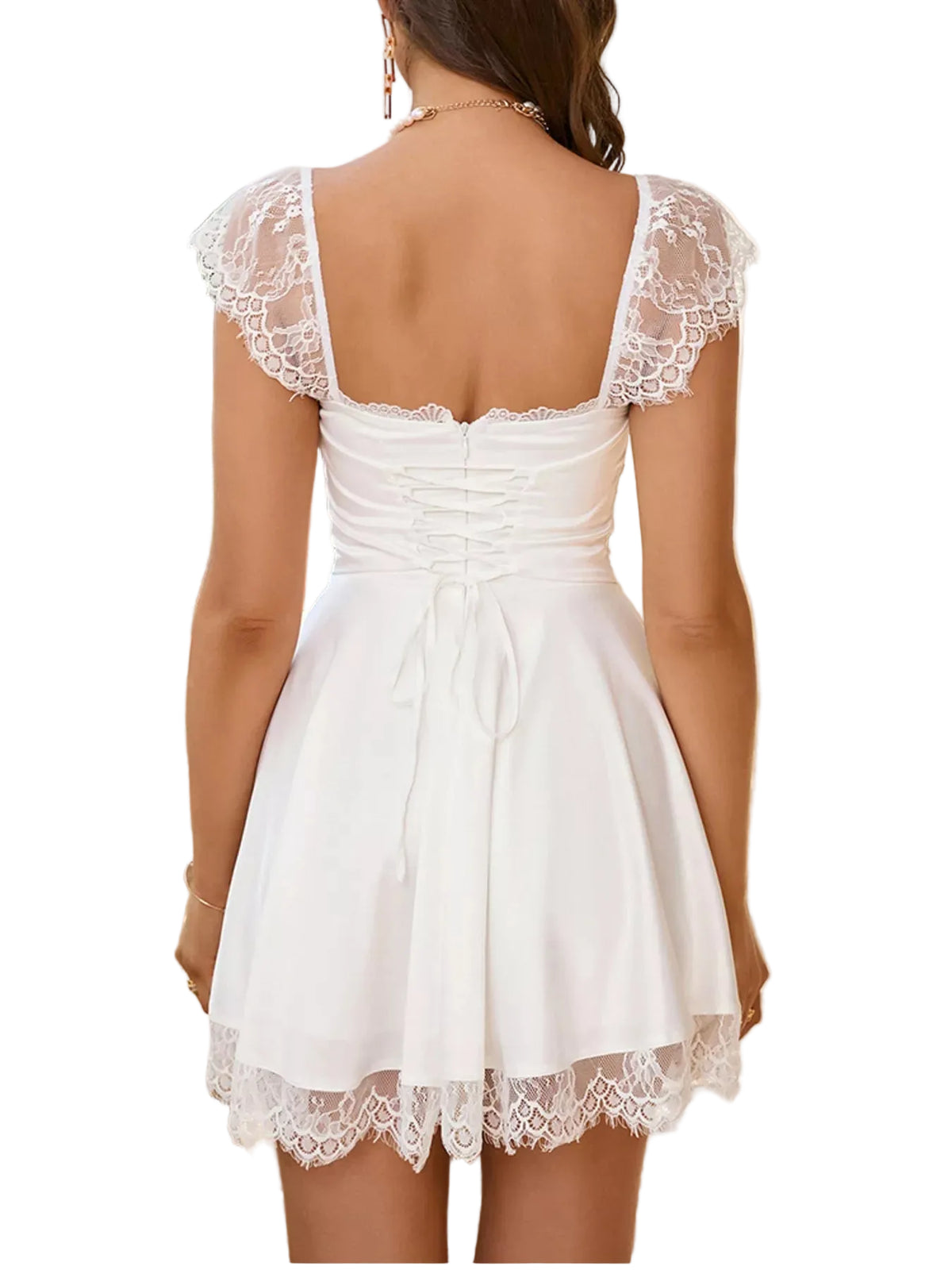 Lace Trim Square Neck Mini Dress