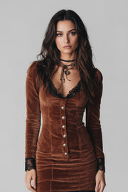 Pair with strappy heels and statement jewelry for a glamorous evening look, or dress it down with a leather jacket for edgy sophistication. The rich velvet texture catches the light beautifully, ensuring you'll turn heads wherever you go.