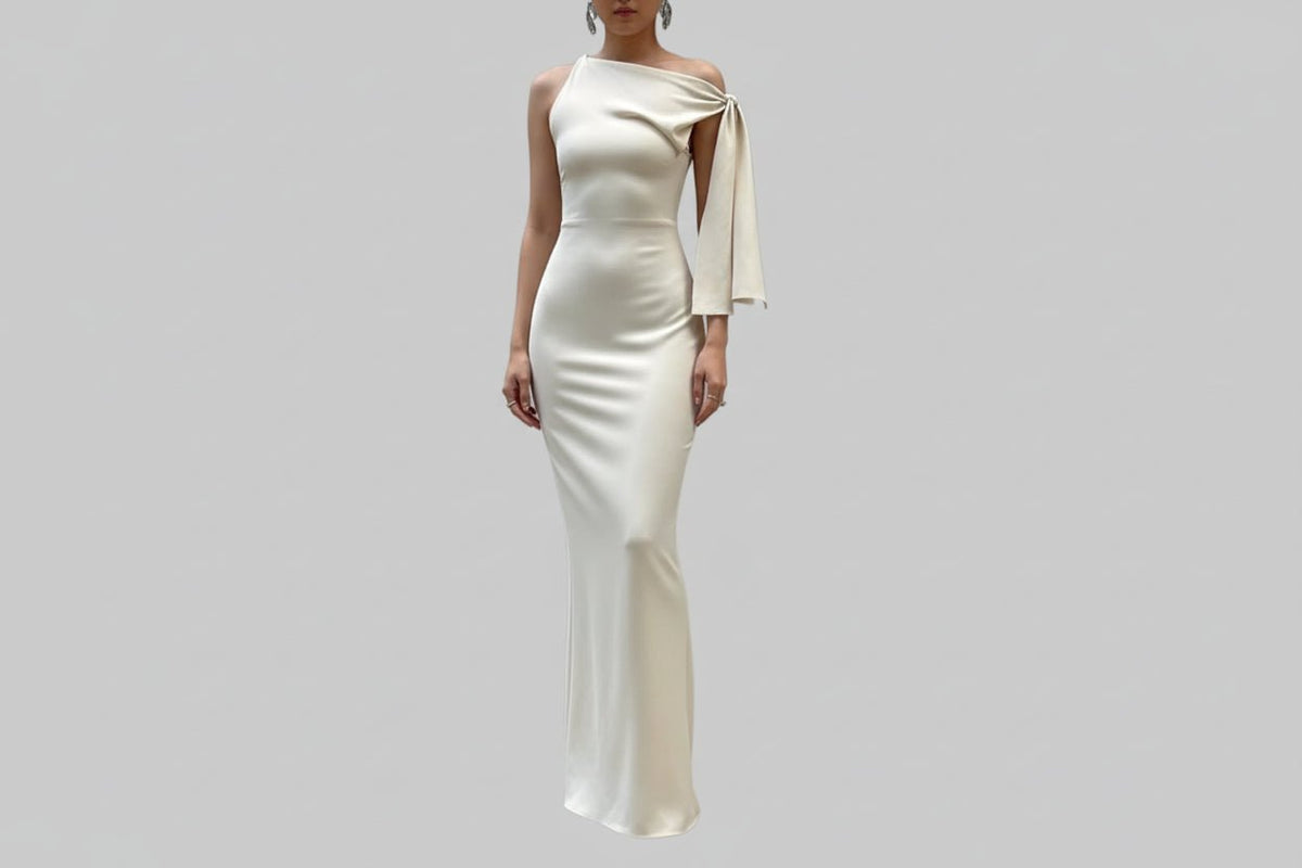 Style with delicate jewelry and heeled sandals for an unforgettable ensemble.