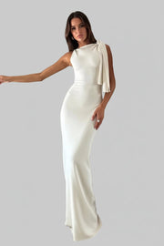 Embrace effortless elegance in this sleeveless tie shoulder maxi dress that combines timeless sophistication with modern femininity. The graceful floor-length silhouette flows beautifully with every step, creating a refined look perfect for weddings, garden parties, and upscale events.