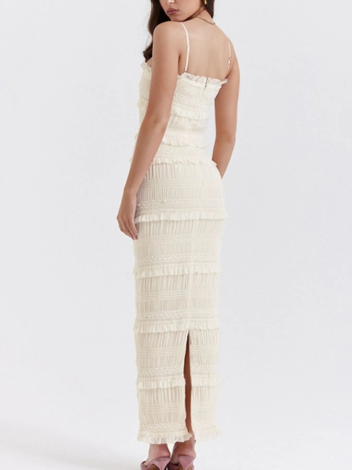 Frill Tiered Textured Maxi Cami Dress