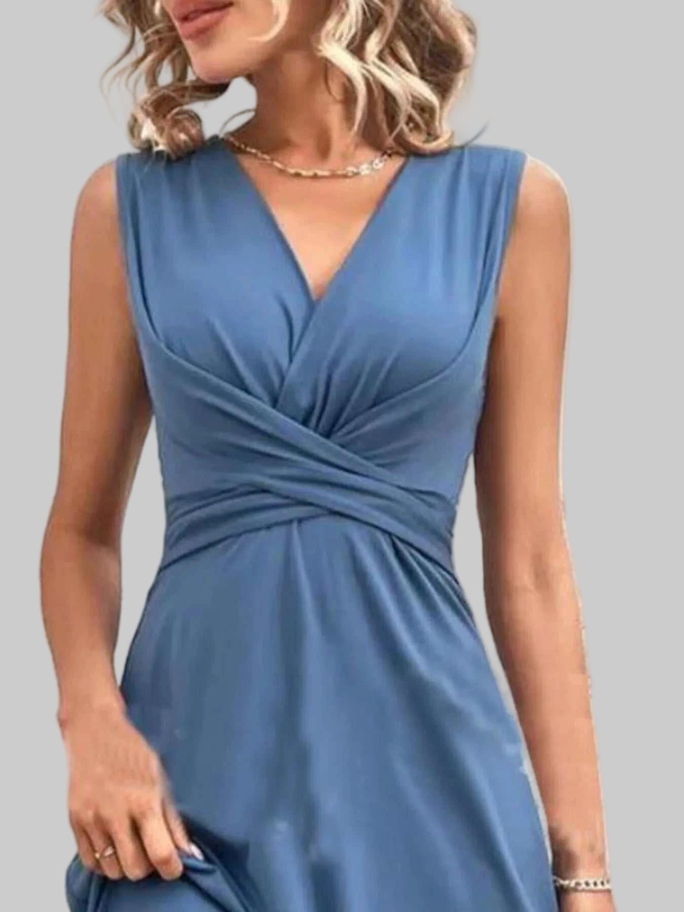 Discover effortless elegance with this Surplice Sleeveless Wrap Dress, a timeless piece that flatters every silhouette. The classic surplice neckline creates a universally flattering V-shape that elongates your frame, while the wrap design cinches at the waist for a feminine, tailored fit.