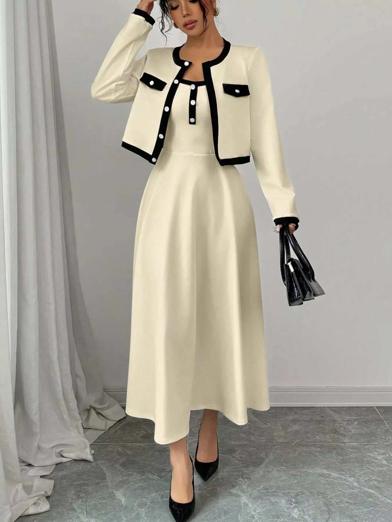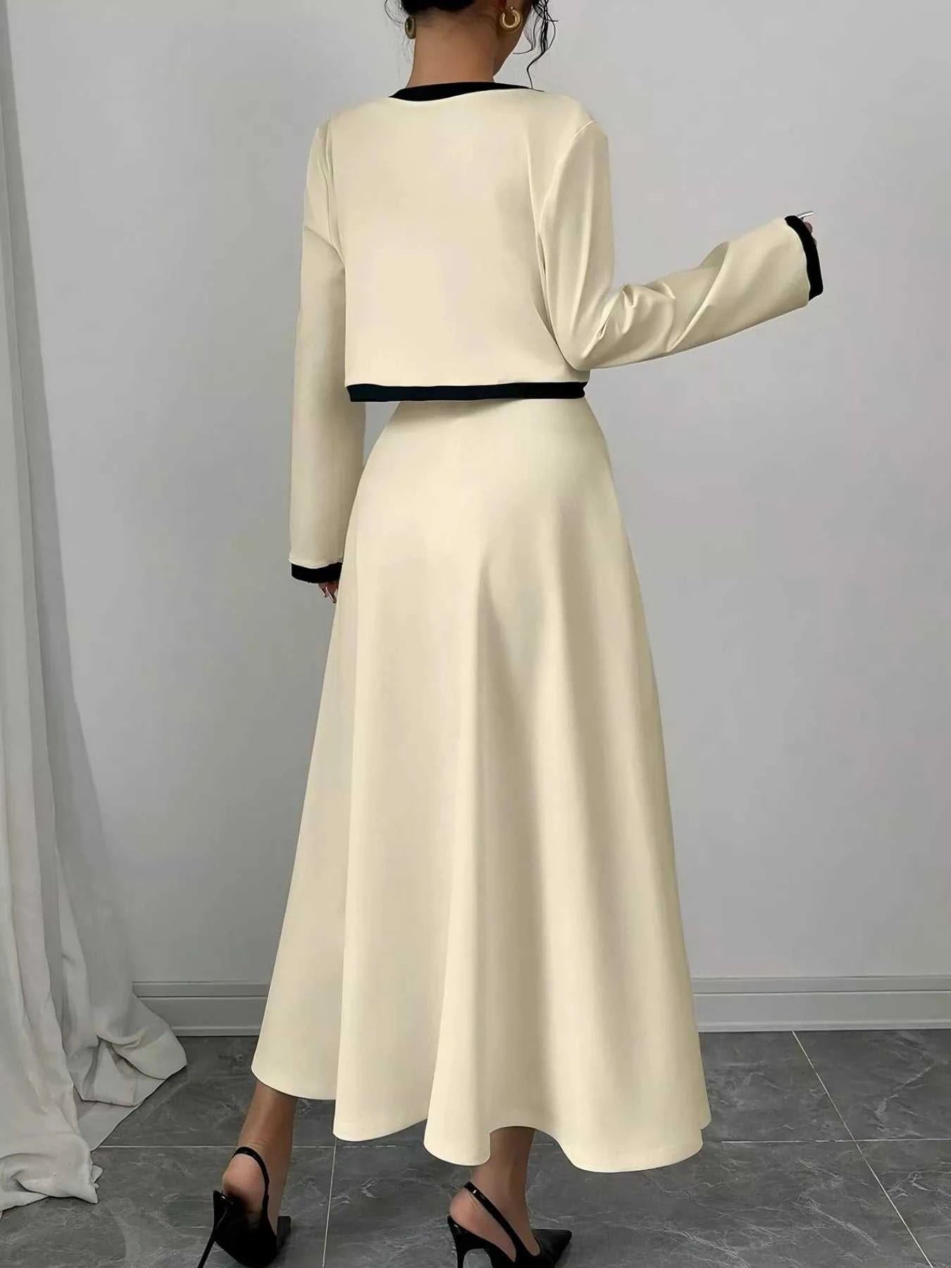 Contrast Trim Maxi Dress & Cropped Cardigan Set| JSandiclothing